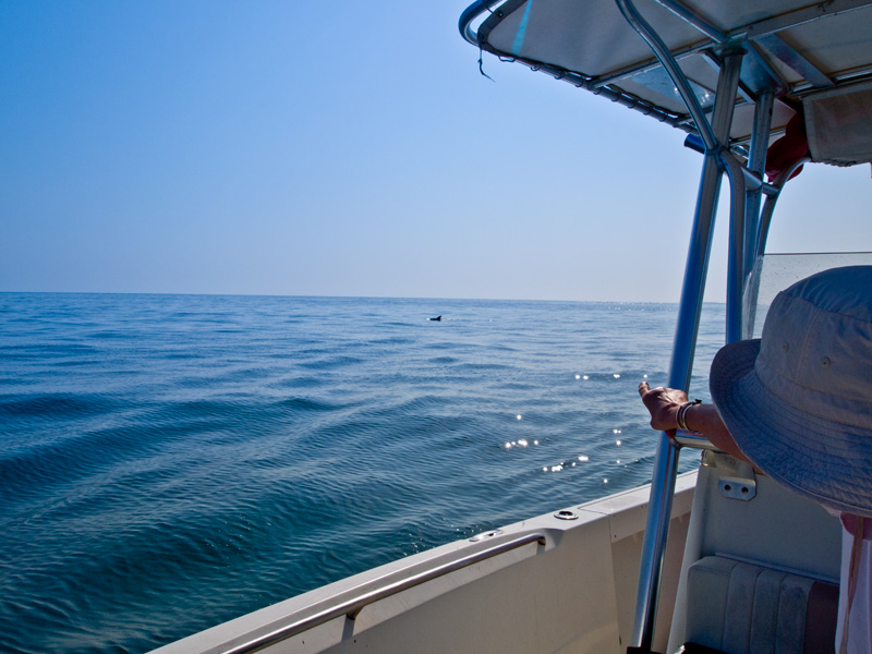 On the way in we saw dolphins playing in the harbor, so we stopped and watched them from a distance.